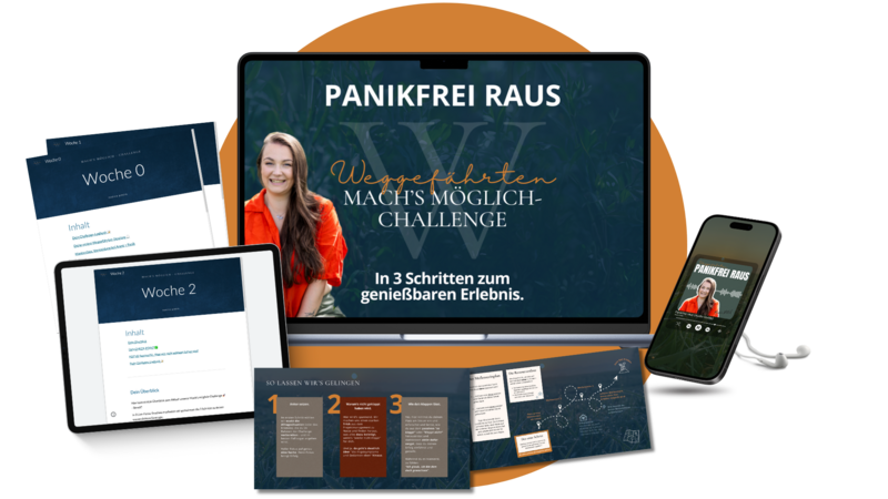 Und weil ich nach meiner eigenen durchlebten Angst + Panik und der Begleitung meiner Weggefährten genau weiß, wie wichtig es ist, echten Halt und Zuversicht zu fühlen, habe ich die Mach's möglich-Challenge für dich gestaltet. Sie ist dein erster Schritt in ein neues Kapitel – das du ab heute selbst bestimmst.